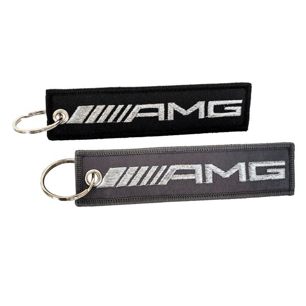 Embroidered AMG Logo Key Chain Accessory Crew Tag Ring Black Gray Silver Font Images |